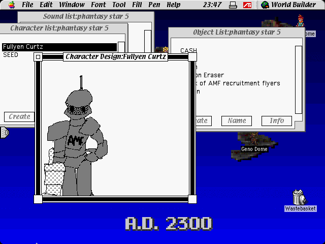 This is Phantasy Star Five: Fullyen's Curse, a project I was working on using a PPC 7500 and World Builder (now discontinued), a text adventure creator for the classic Mac. However, despite the editor working fine, games created with it do not work on the Mac. I will probably look for a different program to create it with that works on my Mac.